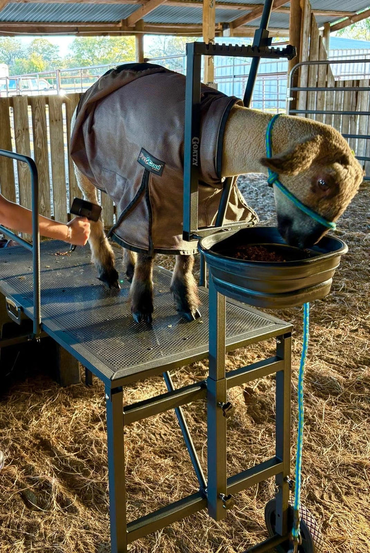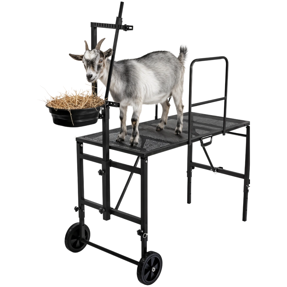 This is a great addition to our homestead. I was looking for a stand I could move around easily. This has wheels and is easy to move around. The assembly was quick and the video was so easy to follow. The goats took to it right waist and we will be using this for hoof trimming, milking and administering medications/supplements